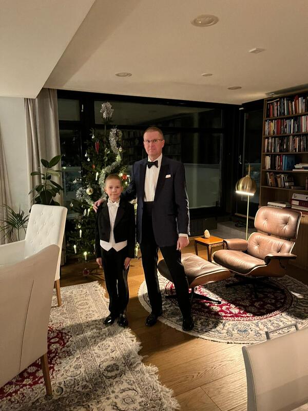 8.12. Pe, Helsingin pormestari Juhana Vartiainen on kutsunut kaikki peruskoulun 4-luokkalaiset itsenäisyysjuhlaan Helsingin messukeskukseen. Viktorkin on saanut kutsun ja on alla olevassa kuvassa juhlapuvussaan, frakissa,