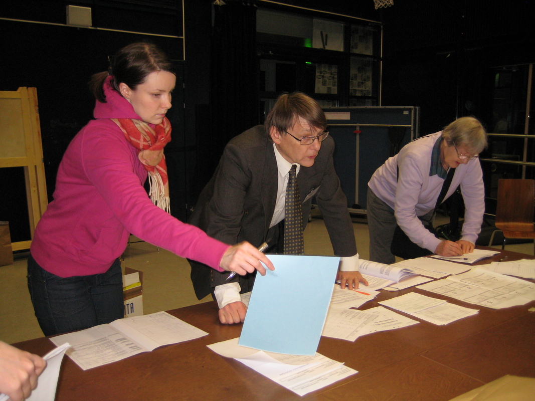 22.1. Su, Tasavallan presidentin vaalit, 1. äänestyspäivä, mukana vaalilautakunnassa,