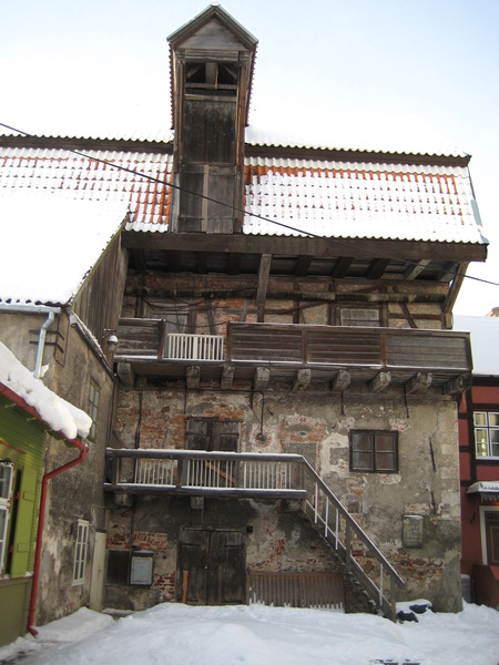 Kirkkojen lisäksi tutustuimme Pärnun vanhimpiin rakennuksiin: Punaiseen torniin, joka on ollut osa kaupungin puolustusmuuria ja rakennettu joskus 1500-luvulla. Pitkään torni paksuine seinineen toimi vankilana, myöhemmin kaupungin arkiston säilytyspaikkana. Nyt se on näyttelytilana. Kauppias Mohrin talossa, joka on aivan keskustan kävelykadun varrella, on vieraillut Ruotsin kuningas Kaarle XII, joka 1700 matkasi joukkoineen Narvaan ja löi siellä Pietari Suuren joukot. Myös toinen hallitsija Katariina Suuri on vieraillut talossa. Sain hienon kuvan tästä hallitsijoiden suosiman talon pihapiiristä.