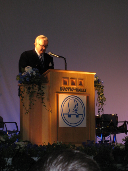 Oopperalaulaja, professori Jorma Hynninen lauloi komeasti Jean Sibeliuksen Ristilukin, Oskar Merikannon Laatokan ja Taneli Kuusiston Suomalaisen rukouksen. Juhlapuheen piti presidentti Martti Ahtisaari. Hän toi puheessaan esiin muun muassa sen, että vaikka Pohjolassa on rauha säilynyt 65 vuotta, niin se on moneen kertaan järkynyt muualla Euroopassa näiden vuosien aikana, viimeksi Balkanilla. Tarvitaan ponnisteluja sen säilyttämiseksi. Rauha on kuin hento kukkanen. Sitä on vaalittava.