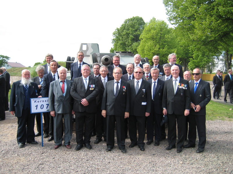 Meidän kurssilta numero 107 oli paikalle saapunut 22 kurssiveljeä. Oli hauska tavata heitä, vaihtaa kuulumisia, osallistua hyvin järjestettyyn 90-vuotisjuhlaan Bastionissa ja ohimarssiin Kadettikoulunkadulla. Sovimme alustavasti, että kokoonnumme 6. elokuuta 2011 kello 14.00 Haminassa, jolloin kurssimme käymisestä tulee täyteen 50 vuotta. Kokoontumisesta tiedotetaan ensi vuonna. Toivottavasti saamme silloin enemmän osallistujia Haminaan kuin tällä kerralla.