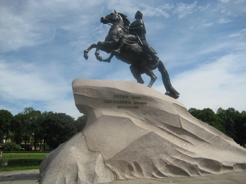 Kun oli kaunis päivä, kävelimme Iisakin kirkolta Nevan rantaan ja tutustuimme lähemmin Pietari Suuren ratsastajapatsaaseen niin sanottuun Vaskiratsastajaan, jonka Katariina Suuri on valmistuttanut Pietari Suuren muistoksi. Useita vasta vihittyjä pareja oli myös tullut patsaalle suurilla limusiineilla kuvauttamaan itseään patsaalla. Oli mukava seurata heidän kuvausseremonioitaan.