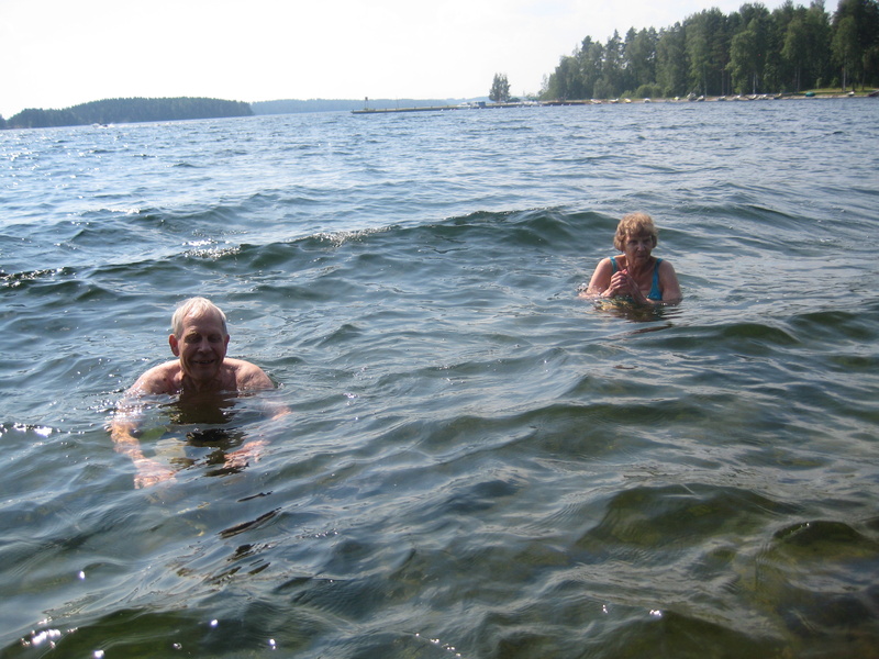 Saatuamme kutsun Onni-serkun (Onni Sinkkosen) 80-vuotispäiville 15.7.2010 lähdimme liikkeelle hyvissä ajoin voidaksemme poiketa Eeva-Leenan veljen Sepon ja hänen vaimonsa Liisan mökillä Kerimäellä. Olimme heidän luonaan kaksi yötä. Päivät olivat kuumia yli 30 astetta kumpanakin päivänä, mutta olihan puhdasvetinen Puruvesi vieressämme. Uimme ainakin kolme jopa neljä kertaa päivässä ja nukuimme ovi auki saadaksemme viilennystä kuumuuteen.