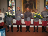 Sunnuntaiaamuna meidän piti olla Nurmon kirkossa, jossa pidettiin Ratsuväkipäivien jumalanpalvelus. Pienen hakemisen jälkeen kirkko löytyikin. Kirkko on kaunis puukirkko, jonne oli kokoontunut melkoisesti kirkkoväkeä. Jumalanpalveluksesta lähetettiin ratsuväkiasuinen seppelpartio laskemaan seppeleet talvi- ja jatkosodan sankarihaudalle. Kerrottakoon, että yksistään talvisodan vastaiskussa 5.3.1940 Äyräpäässä kaatui 39 nurmolaista miestä, joka oli valtava isku ja suru pienelle kunnalle.