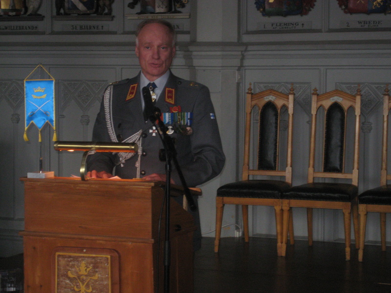 Rakuunakillan Helsingin eskadroonan kornetin, lipun naulaus-ja vihkimisitilaisuus pidettiin Ritarihuoneella 7.9. Ritarihuone tarjoaa upeat puitteet tällaiseen tilaisuuteen. Hyvissä ajoin ennen juhlan alkua asettui Ritarihuoneen pääoven eteen kaksi rakuunaa ratsain toivottamaan vieraat tervetulleiksi. Kutsua oli noudattanut kelpo joukko rakuunain ja ratsuväen perinteitä vaalivia miehiä ja naisia.
