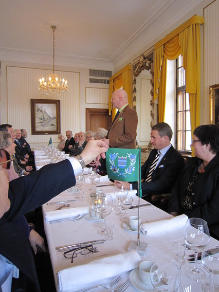 Lähes kolmekymmentä yhdistyksen jäsentä, ystävää ja tukijaa osallistui seppeleenlaskuun ja sen jälkeen samaisen puistikon laidassa sijaitsevan Svenska Klubbenin lounas- ja esitelmätilaisuuteen. Lounastilaisuus aloitettiin komeasti Pellingin marsilla, jonka taituroi flyygelillä musiikin maisteri Jonas Kukkonen. Marssilla on myös sanat, jotka ovat olleet pitkään unohduksissa. Ne jaettiin nyt esityksen jälkeen osallistujille.