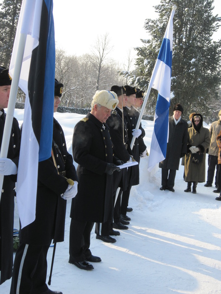 Osallistuin Suomen-poikien perinneyhdistyksen jäsenenä seppleenlaskuun Malmin hautausmaalla ja Suomen-poikien perinneyhdistyksen vuosikokoukseen Haagassa. Ryhdikkäät kadetit kantoivat Suomen ja Viron liput sankarihaudalle. Seppeleen muistomerkille laskivat Viron Helsingin suurlähettiläs Mart Tarmak ja sotilasasiamies Peeter Läns sekä Suomen-poikien perinneyhdistyksen seppeleen puheenjohtaja Seppo Lahtela ja sihteeri Reijo Tanskanen. Muistosanat haudalla lausui merivoimien entinen komentaja, vara-amiraali Hans Holmström.