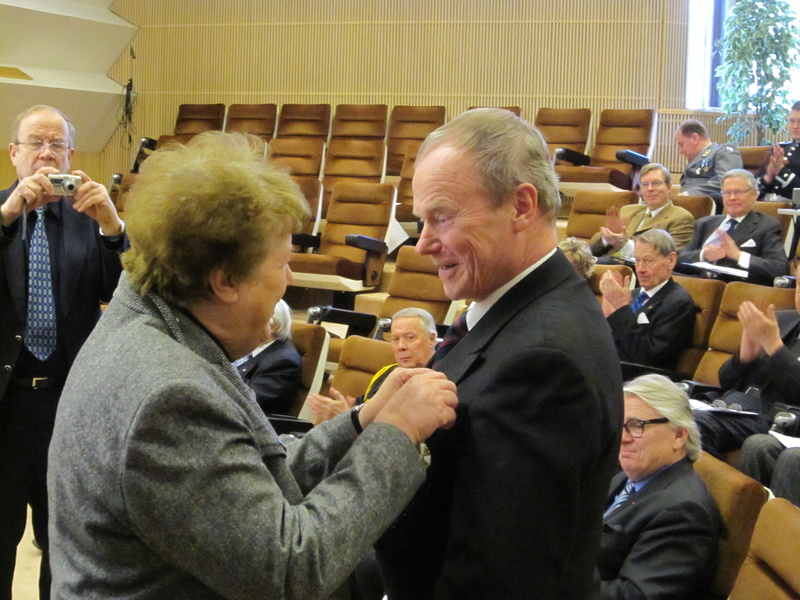 Yhdistys muisti Kadettikoulua Suomen-poikien viirillä ja ojensi muistolahjana kirjan amiraali Hans Holströmille ja puheenpitäjä Lasse Lehtiselle sekä lippuvartiossa olleille kadeteille. Näiden muistamisten jälkeen yhdistyksen pitkäaikaiselle puheenjohtajalle Seppo Lahtelalle ojennettiin Tasavallan presidentin hänelle viime joulukuussa myöntämä Suomen Valkoisen Ruusun 1. luokan Ritarimerkki. "Se luoti tiesi paikkansa", totesi yhdistyksen varapuheenjohtaja Nyyrikki Kurkivuori ojentaessaan kunniamerkiin liittyvän kunniakirjan Lahtelalle. Tämän jälkeen kokouksesta poistuivat kaikki muut paitsi yhdistyksen jäsenet.