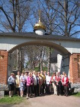 Yli kaksikymmentä Gyllene klubbenin jäsentä vahvistettuna muutamalla ulkojäsenellä vieraili toukokuun 11. päivänä Kirkkonummen Jorvaksessa Pokrovan ortodoksisessa kirkossa ja veljesyhteisössä. Sää suosi retkeämme. Osa joukostamme saapui linja-autolla Helsingin Kampin linja-autoasemalta osa omilla autoilla.