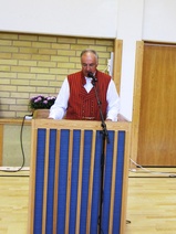 Eskadroonan päällikkö, reservin vänrikki (kornetti) Erkki Ylisippola piti laajan esitelmän suomalaisesta ratsuväkimusiikista ja esitteli Kauhajoen Soittokunnan konsertissa esittämät kahdeksan kappaletta.