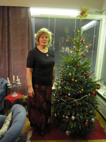 Lähdimme heti aamusella kuusen ostoon. Löysimme läheisestä Plantagenista kauniin kuusen 25 euron hintaan. Eeva-Leena olisi toivonut kookkaampaa, mutta tämänkin sijoittamisessa auton sisätiloihin oli täysi työ. Se täytti auton koko peräosan. Saimme kuitenkin kuusen ja ostamamme kukat hyvin kuljetettua kotiin. Jäljellä jäi vielä kuusen jalkaan asettaminen, nosto sisälle ja koristelu.