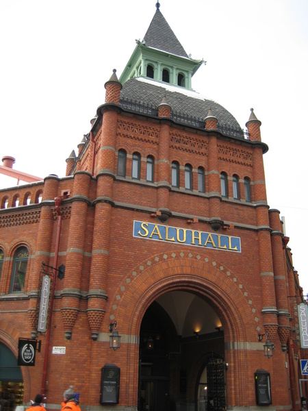 Seuraavan päivän aamiaisen jälkeen kävelimme laivalta Gärdetin asemalle ja huristelimme "tunnelbanalla" Östermalmstorgetille, jossa jäimme pois. Halusimme nähdä, miltä näyttää kuuluisa Östermalmstorgetin Kauppahalli. Pistäydyimme hallissa ja totesimme kuulopuheiden pitävän paikkansa. Hallissa on enää melko vähän perinteisiä hallikauppoja ja -kauppiaita, jotka myyvät pelkästään ruoka-aineita. Suuren osa kauppapaikoista vievät nykyisin erilaiset ravintolat: kala- ja äyriäisravintolat, etniset ravintolat ym. sekä kahvilat ja konditoriat. Emme kuitenkaan jääneet kauppahalliin syömään, sillä olimme suunnitelleet, että syömme lounaan Grand Hotellin kyljessä olevassa Matbarenissa.