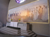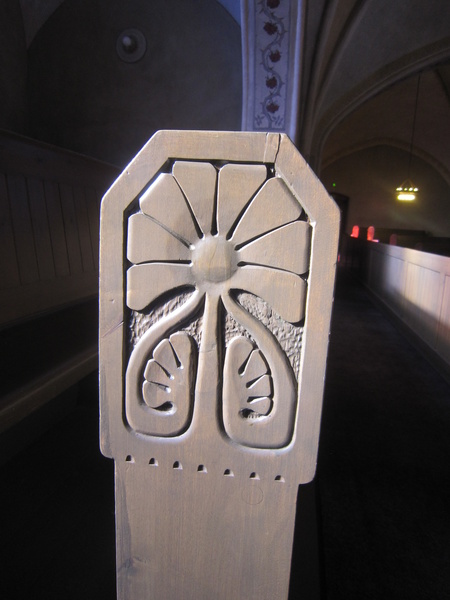Kirkon sisäpuolisen koristelun toteutti Hugo Simberg lukuunottamatta alttaritaulua ja sen yläpuolella olevaa risti-ikkunaa. Valtava "Ylösnousemus"-alttaritaulu (yli 10 metriä leveä ja lähes neljä metriä korkea) ja kuorissa oleva risti-ikkuna ovat Magnus Enckellin töitä. En ole missään kirkossa nähnyt näin suurta ja vaikuttavaa alttaritaulua. Siinä kuolleet nousevat ylös haudoistaan ja vaeltavat kohti kirkasta valoa.