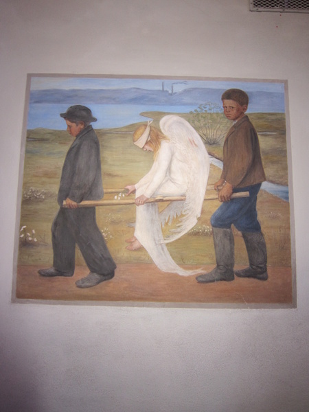 Hugo Simbergin työt: lehterin etuseinään maalatut "Köynnöstä kantavat alastomat pojat", joita on 12 kuten apostoleja, "Kuoleman puutarha" ja "Haavoittunut enkeli" sekä kirkon katossa oleva "Suussa omenaa pitävä käärme" ovat vielä tänä päivänäkin hätkähdyttäviä. Voi vain kuvitella millaisia tuntemuksia ne aiheuttivat kirkkoväessä 1900-luvun ensi vuosikymmeninä. Ne eivät ole perinteisiä kirkkomaalauksia, mutta niillä kaikilla on oma symbolinen merkityksensä.