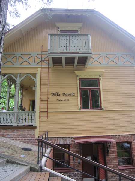Huomasimme Aamulehdestä, että Pyynikillä on kesäteatterin lisäksi toinenkin paikka, jossa voi nauttia teatteriesityksestä kauniin luonnon keskellä Pyhäjärven rannan tuntumassa. Paikka on Villa Varala, joka on vuokrannut tilansa tänä kesänä Eliisa-teatterille. Teatterin tämän kesän ohjelmistossa on Agapetuksen (Yrjö Soinin) kirjoittama komedia Kaikenlaisia vieraita.