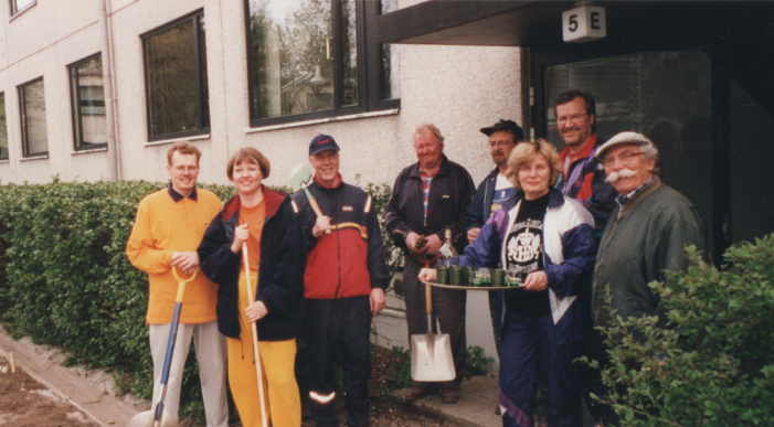 Aivan suurenmoista oli myös, että saimme naapuriksemme Markelinin pariskunnan, joka asui meitä vastapäätä samassa rapussa. He olivat asuneet lähialueella omakotitalossaan, jonka talon Puolimatkan rakennusliike osti, koska tie asuntoalueellemme tuli kulkemaan Markelinin tontin kautta. Korvauksena tontista ja omakotitalosta rakennusliike rakensi heille tilavan kodin saunoineen ja muine varusteineen puiston reunaan sijoittuvaan pieneen taloon - meidän taloomme ja meidän naapuriksemme. Tutustuimme tähän mukavaan, ruotsia puhuvaan pariskuntaan nopeasti ja saimme heistä elämänikäiset ystävät.