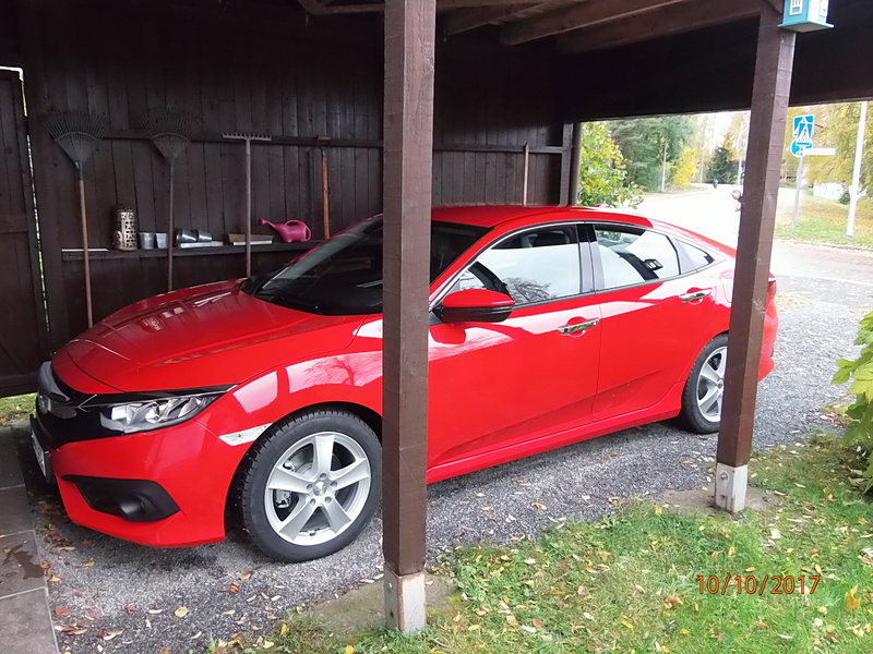 Aleksis Kiven päivänä 10. lokakuuta noudimme uuden automme Honda Civicin Tampereen Vehosta. Sillä on tätä kirjoitettaessa ajettu jo 2300 kilometriä.